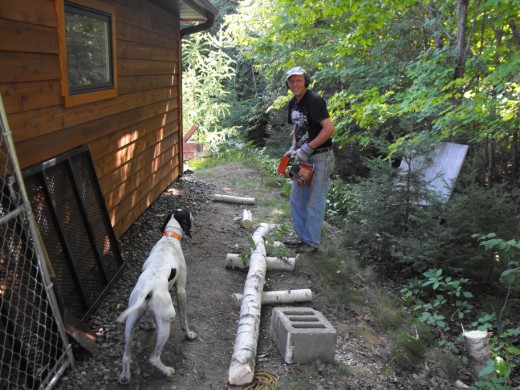 Jim's Retired they said and look what the first thing he has to do! Cut down another Tree!!!